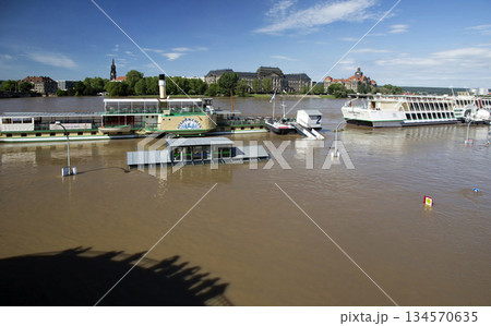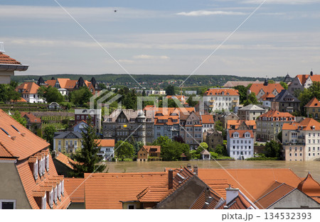 The city of Meissen. View of the Elbe river, flooded during the floods in June 2013