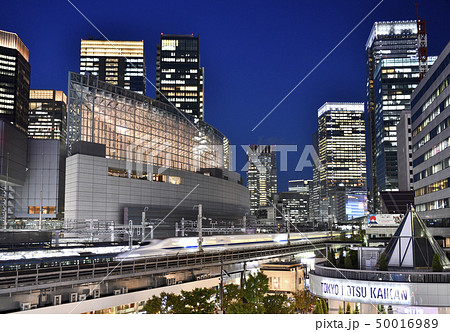 日本の東京都市景観 有楽町駅前を駆け抜ける新幹線