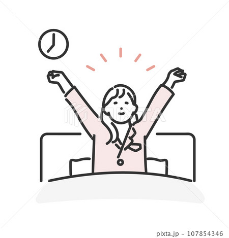 朝スッキリ目覚めて伸びをする女性のイメージイラスト素材