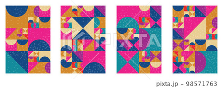 Abstract poster set with geometric shapes. Squares triangles and semicircles vintage backgrounds