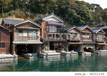 静かな漁村伊根の舟屋、京都府