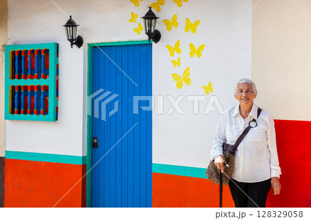 Senior woman at the beautiful colonial town of Concepcion located in the department of Antioquia in Colombia.