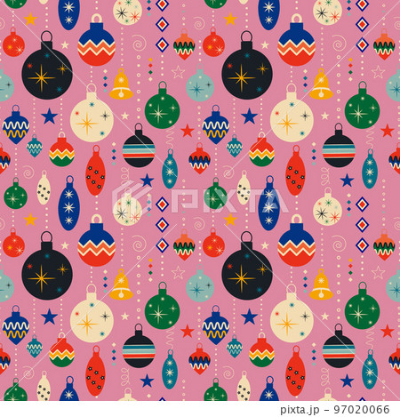 Retro Christmas pattern with tree toys. Christmas seamless background