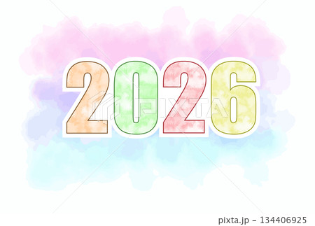 2026年 年賀状 水彩風カラフル数字イラスト 背景素材