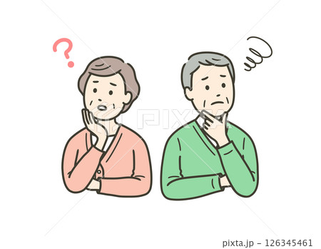 高齢男女の夫婦が悩んでいる上半身イラスト