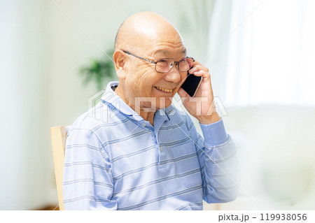 スマートフォンで通話するシニア男性