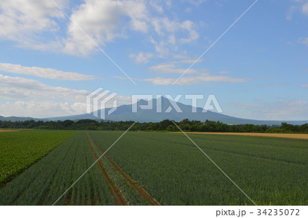 麦畑の向こうに斜里岳(北海道斜里郡斜里町)