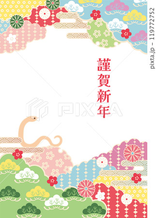 2025年 巳年 へびの正月飾りの年賀状【横】 文字なし