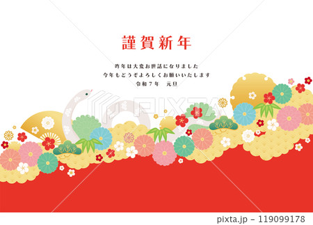 2025年巳年の年賀状テンプレート イラスト へび年 かわいい おしゃれ シンプル デザイン 年賀