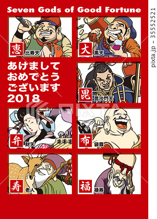 2018年賀状テンプレート_七福神02_HNY_日本語添え書き付き
