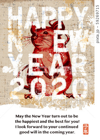 子年年賀状 ハッピーニューイヤー2020