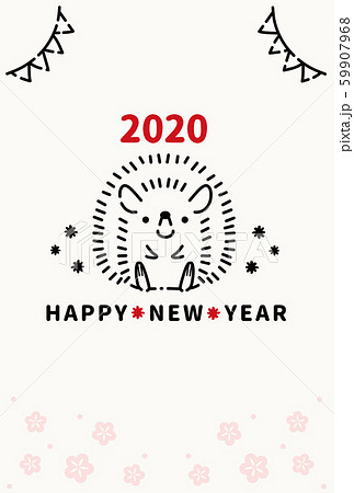 2020年 年賀状 子 ハリネズミ テンプレート