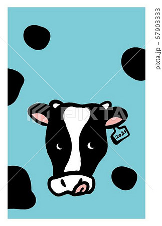 2021年 年賀状 丑年 牛 イラスト 2021年年賀状 シンプルな牛のイラスト ホルスタイン柄