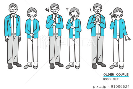 様々な表情のシニア夫婦のベクターイラスト素材/悩む/解決/老夫婦