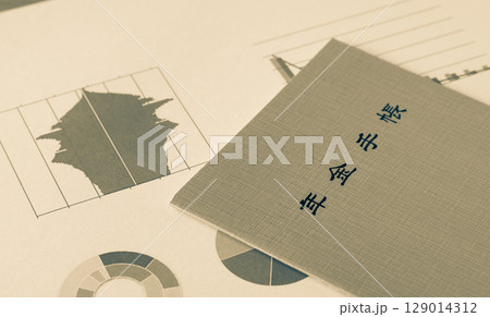 年金手帳とグラフ 年金制度 老後 人口ピラミッド 高齢化