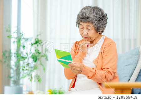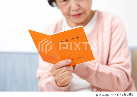シニア女性と年金手帳 老人 おばあちゃん