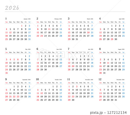 2026年の日本の年間カレンダー