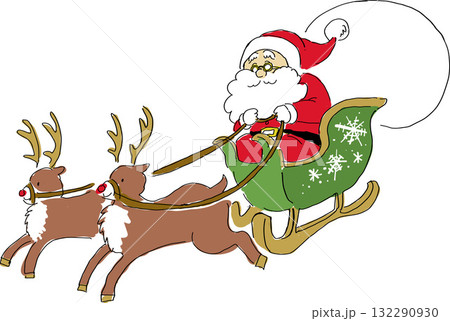 サンタクロースとトナカイのそりの手描き風イラスト