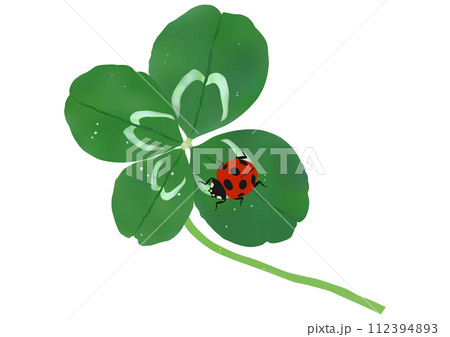 「四つ葉のクローバーに羽を休める益虫のナナホシテントウムシ」
