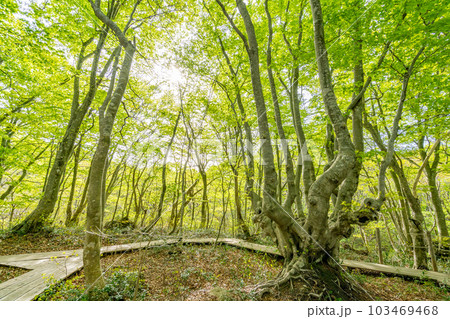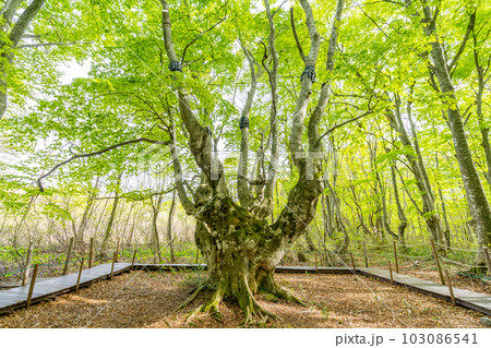 中島台・獅子ヶ鼻湿原の春 あがりこ大王 森の巨人 ブナの巨樹