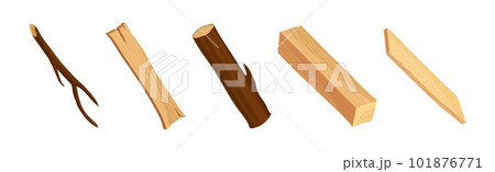 Log, Block and Wooden Plank as Sawed Timber Vector Set
