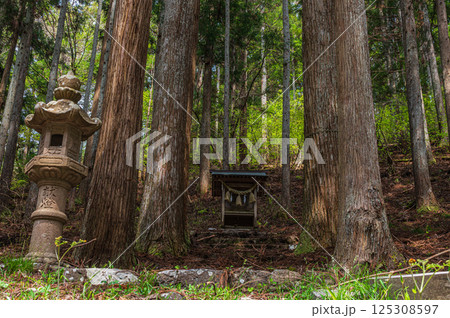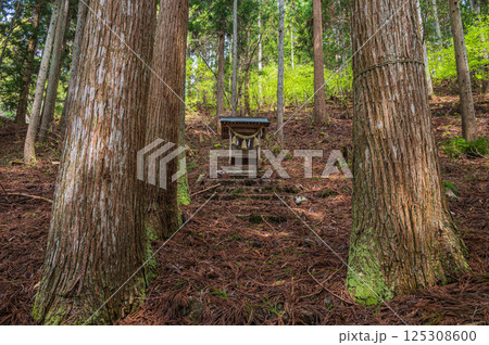 針葉樹林の中の小さな祠 おくやくし之社 長浜市