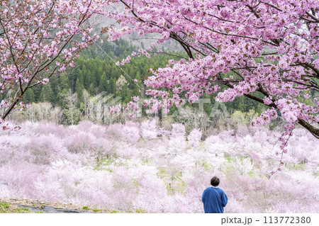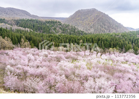 春の桜峠 満開のオオヤマザクラ 福島県北塩原村