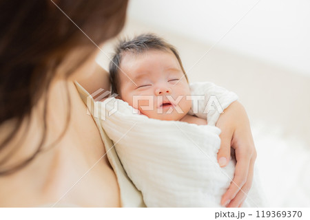 AI生成画像 赤ちゃんと母親 ママ 赤ちゃん 人物 白人 明るい 母子 家族 育児