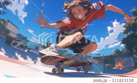 Cute little anime chibi girl in a flying pose. 3d render, 3d illustration.