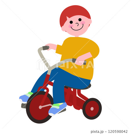 三輪車に乗って遊ぶ幼い男の子のベクターイラスト