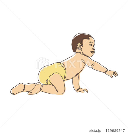 Cute Newborn Baby Cartoon Character Crawling in Line Art Doodle Design
