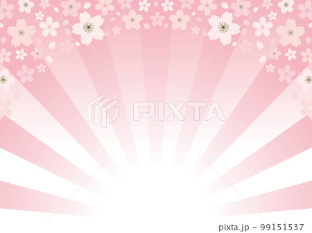 桜の横フレーム 上にアーチの桜の花のイラスト背景に放射