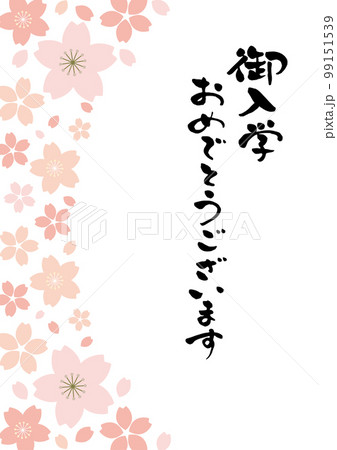 御入学おめでとうございます筆文字のある桜のメッセージカードラベル
