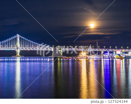 釜山 ライトアップされた広安大橋