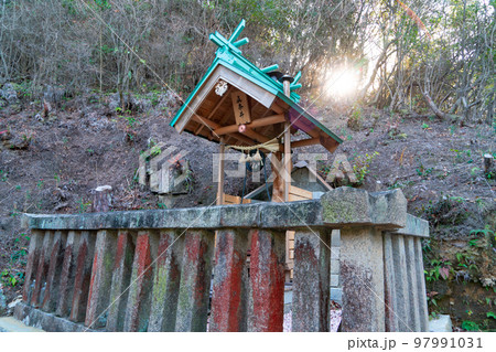 高島 王泊から高島行宮遺阯碑への入口に建つ鳥居 岡山県笠岡市