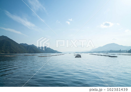 広島 宮島へ向かうフェリーから眺めた穏やかな瀬戸内海の眺め