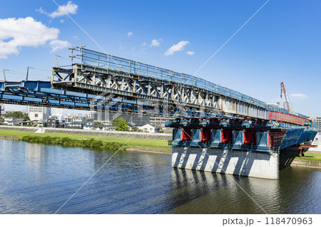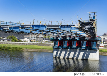 新しい橋の架け替え工事