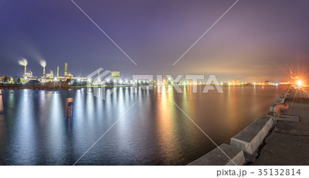 広畑埠頭の工場夜景、高解像パノラマ(兵庫県 姫路市 広畑区富士町) ※作品コメント欄に撮影位置情報有