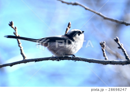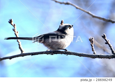東京都三鷹市の野鳥 仙川公園遊歩道の桜の枝にとまるエナガ