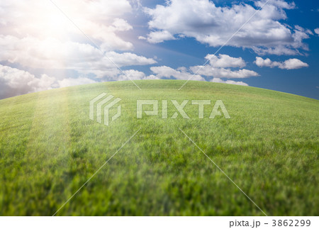 Green Grass Field, Blue Sky and Sun