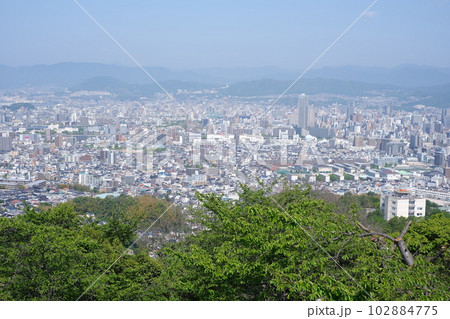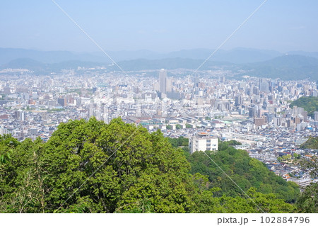 黄金山から眺めた冬の黄昏時の広島市内の景色