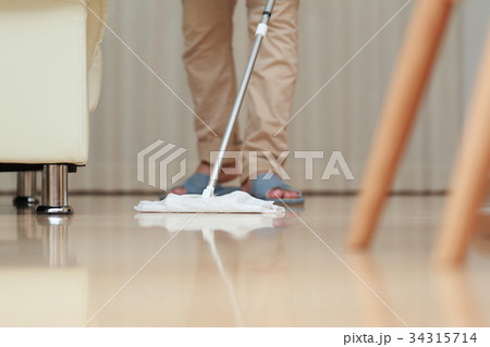 床拭きをする女性、ワイパー、部屋