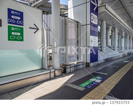 高速バスターミナルの乗り場通路と案内サイン