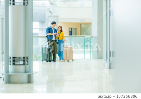 空港でスマホ確認 ■撮影協力:関西国際空港(KIX)