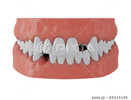 jaw with missing front upper tooth deuce and lower tooth three on white background, 3d render