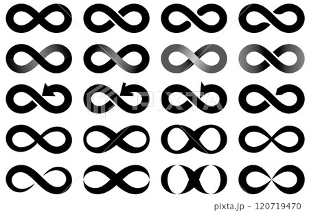 無限大マークのモノクロのベクターイラストセット