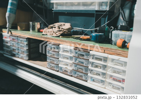 「BOTTOM」と書かれた積み木が置かれたデスク