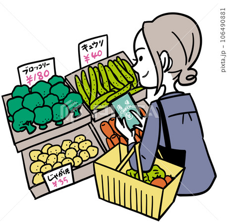 スーパーの野菜売り場で底値チェックする主婦