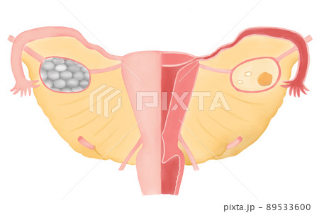 女性の人体解剖図の水彩イラスト 子宮の断面図