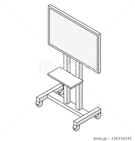 スタンド付き大型モニターのアイソメトリック線画イラスト
